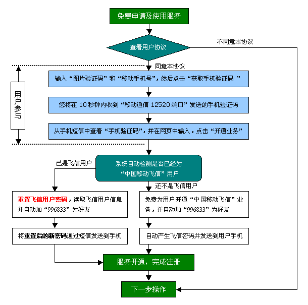 眉山人才網(wǎng)/洪雅人才網(wǎng)/彭山人才網(wǎng)/仁壽人才網(wǎng)/青神人才網(wǎng)/丹棱人才網(wǎng)/四川人才網(wǎng)/樂山人才網(wǎng)/眉山勞動(dòng)力市場(chǎng) “移動(dòng)飛信求職招聘通”業(yè)務(wù)依托中國(guó)移動(dòng)通信的“中國(guó)移動(dòng)飛信”平臺(tái),經(jīng)中國(guó)移動(dòng)通信提供移動(dòng)飛信接口,由移動(dòng)通信的第三方合作伙伴依據(jù)“飛信群”技術(shù)開發(fā)飛信短信發(fā)送接口(向用戶免費(fèi)發(fā)送短信),人才服務(wù)機(jī)構(gòu)提供短信數(shù)據(jù)(如招聘職位、招聘會(huì)信息等)來共同搭建。通過以上三方合作,為移動(dòng)通信的手機(jī)用戶免費(fèi)提供的求職招聘短信服務(wù),方便客戶第一時(shí)間通過短信獲悉最新信息,此服務(wù)為社會(huì)化公益服務(wù),不收取用戶任何費(fèi)用。 一、服務(wù)開通流程
